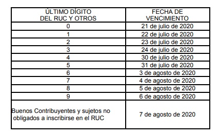 La presentación de la Declaración Anual de IR 2019 para el último grupo de contribuyentes que tenían pendiente esta obligación, se realizará acuerdo con el último dígito de su RUC, teniendo en cuenta las fechas máximas del siguiente cronograma:
